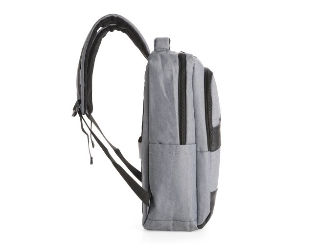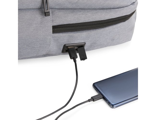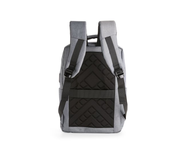 Descrição: Mochila confeccionada em Oxford Jacquard impermeável com detalhes em couro sintético e capacidade de até 15,6 litros. Possui compartimento principal com bolsos em diferentes tamanhos e uma divisória para notebooks de até 15,3 polegadas. Conta com entrada externa para cabos USB-A e USB-C, dois compartimentos frontais com zíper e dois bolsos laterais abertos. Dispõe ainda de alça superior, duas alças de costas e painel traseiro acolchoados, além de engate em nylon para malas de viagem.