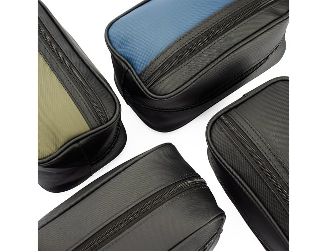Descrição: Nécessaire em couro sintético impermeável com fechamento em zíper. Possui bolso frontal também com zíper e alça lateral de mão.