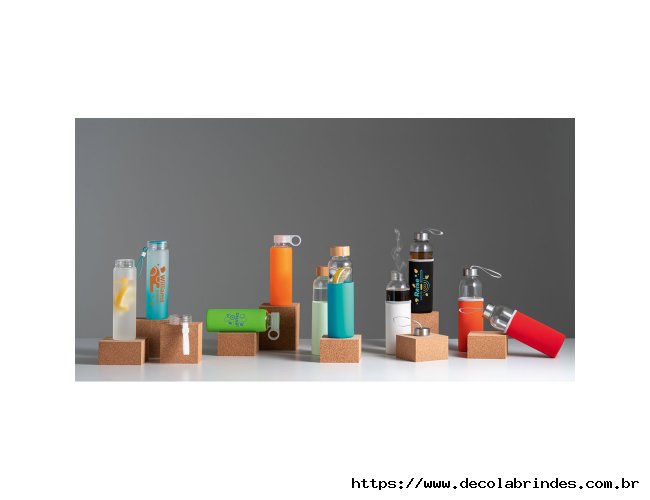 Squeeze em vidro e aço inox com alça na tampa para facilitar o transporte (térmico).