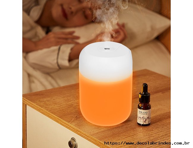 Descrição: Umidificador de ar com LED, possui reservatório de água com capacidade de 350ml, dois níveis de névoa, contínua e com oscilação. Acompanha filtro de algodão e cabo USB V8.